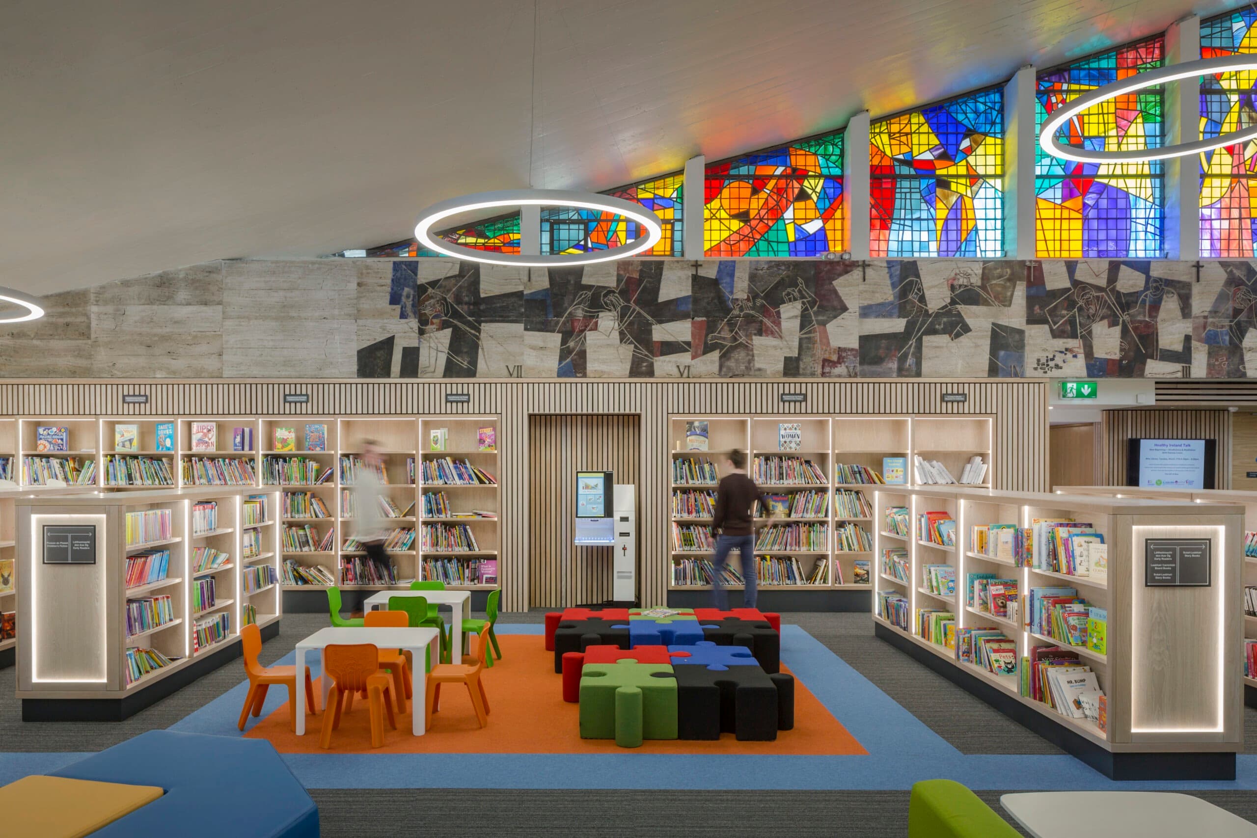 A key challenge was to retain the unique architectural characteristics of the church whilst providing a multifunctional and comfortable library space which would be a joy to visitors and staff alike.