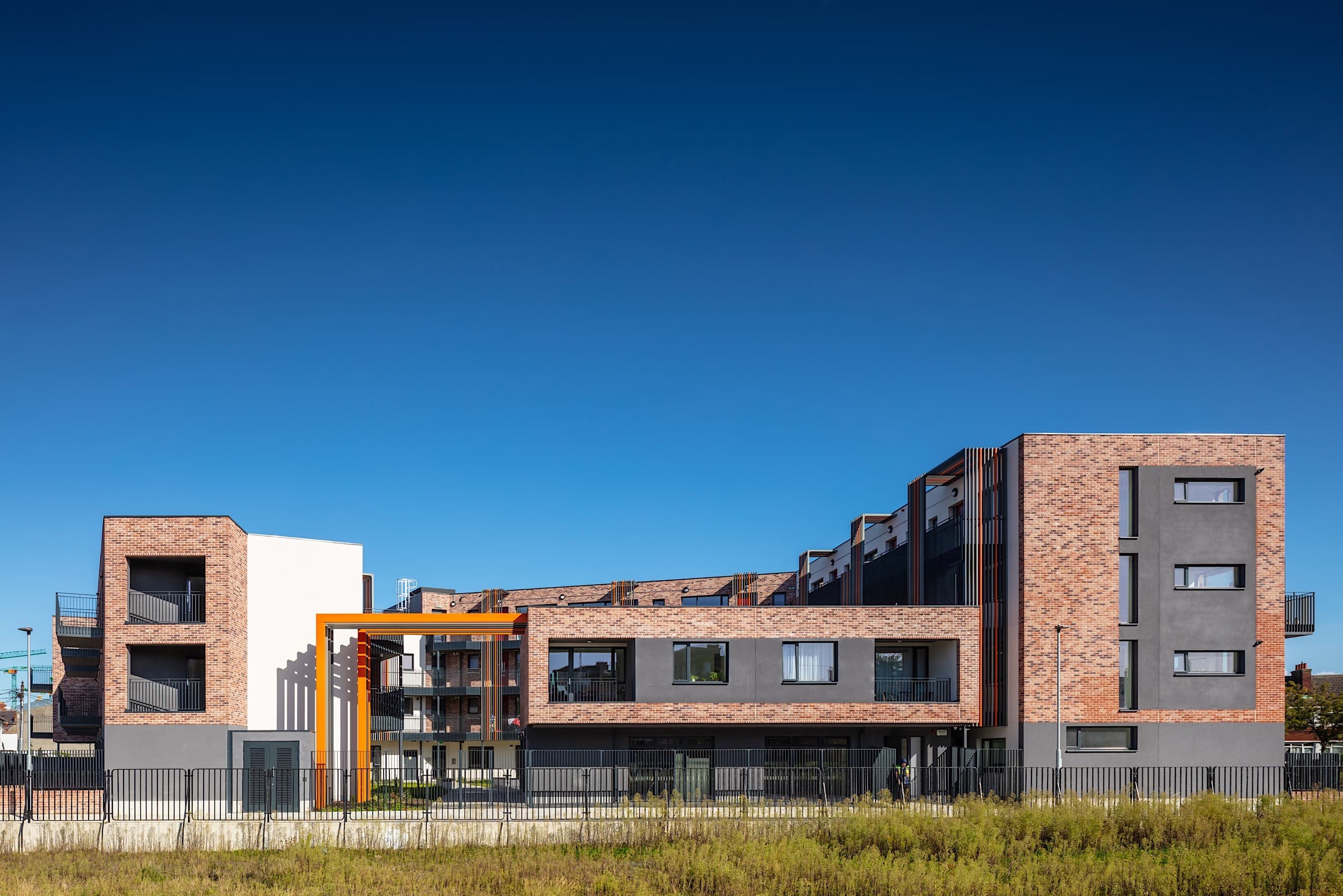 Fold Housing is a community focused housing development comprised of 43 sheltered apartments wrapped around a landscaped courtyard. The project has a community centre on the ground floor and ancillary accommodation to serve the wider community in Rialto, Dublin.