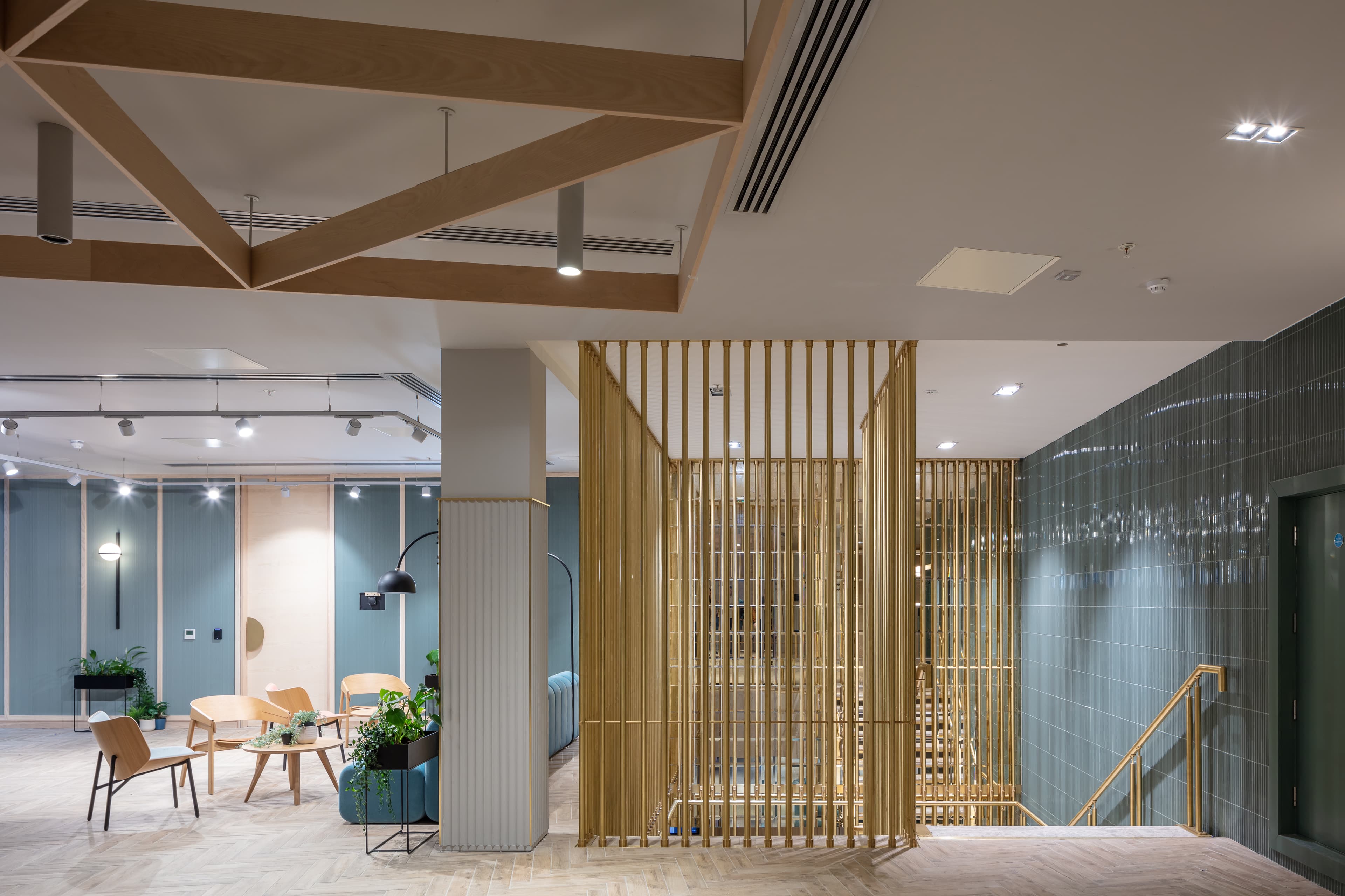 Flexible, ergonomic furniture solutions were integral to the success of the design. This is demonstrated by the main ballroom which can be divided into two rooms as needed, with hidden storage walls for quick reconfigurations. Audio-visual and acoustic solutions, developed over six months with Allegro and H.A.S., ensure excellent sound separation and quality. The ballroom also features automated lighting and projector rigs that drop from 5.2 meters for maintenance and customisation.