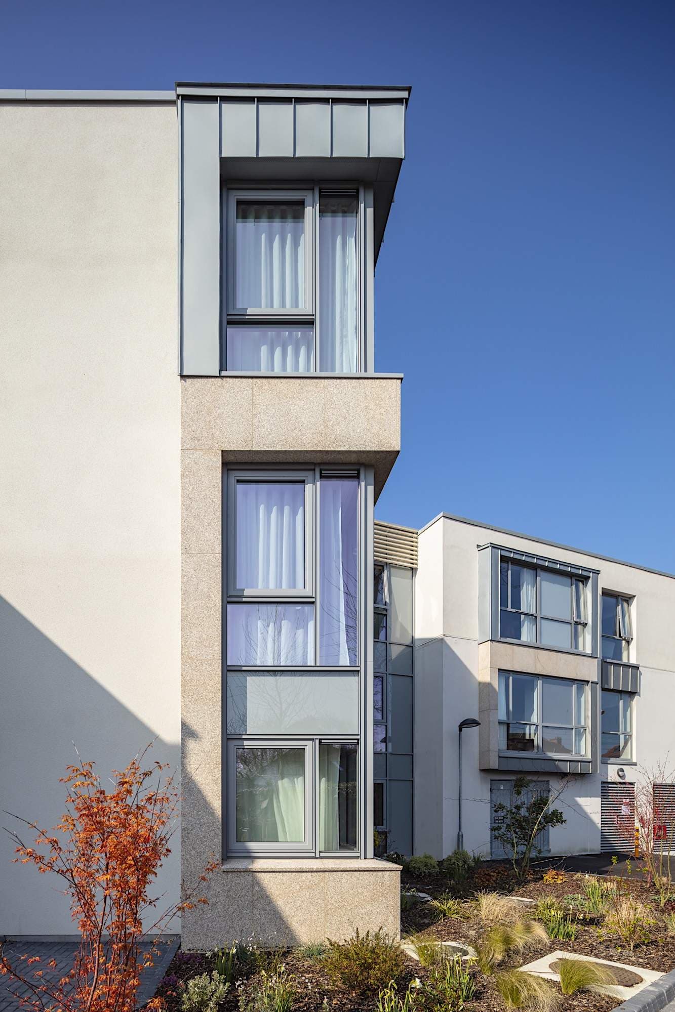 With an emphasis on the therapeutic value of a homelike environment, the design seeks to create the ambience of a home rather than an institution, with natural colours, good daylight and extensive views to the outside. Natural light is an essential element in senior living environments. Roof lights and secondary glazing between the day rooms maximise views and daylight to ensure the sitting spaces are welcoming.