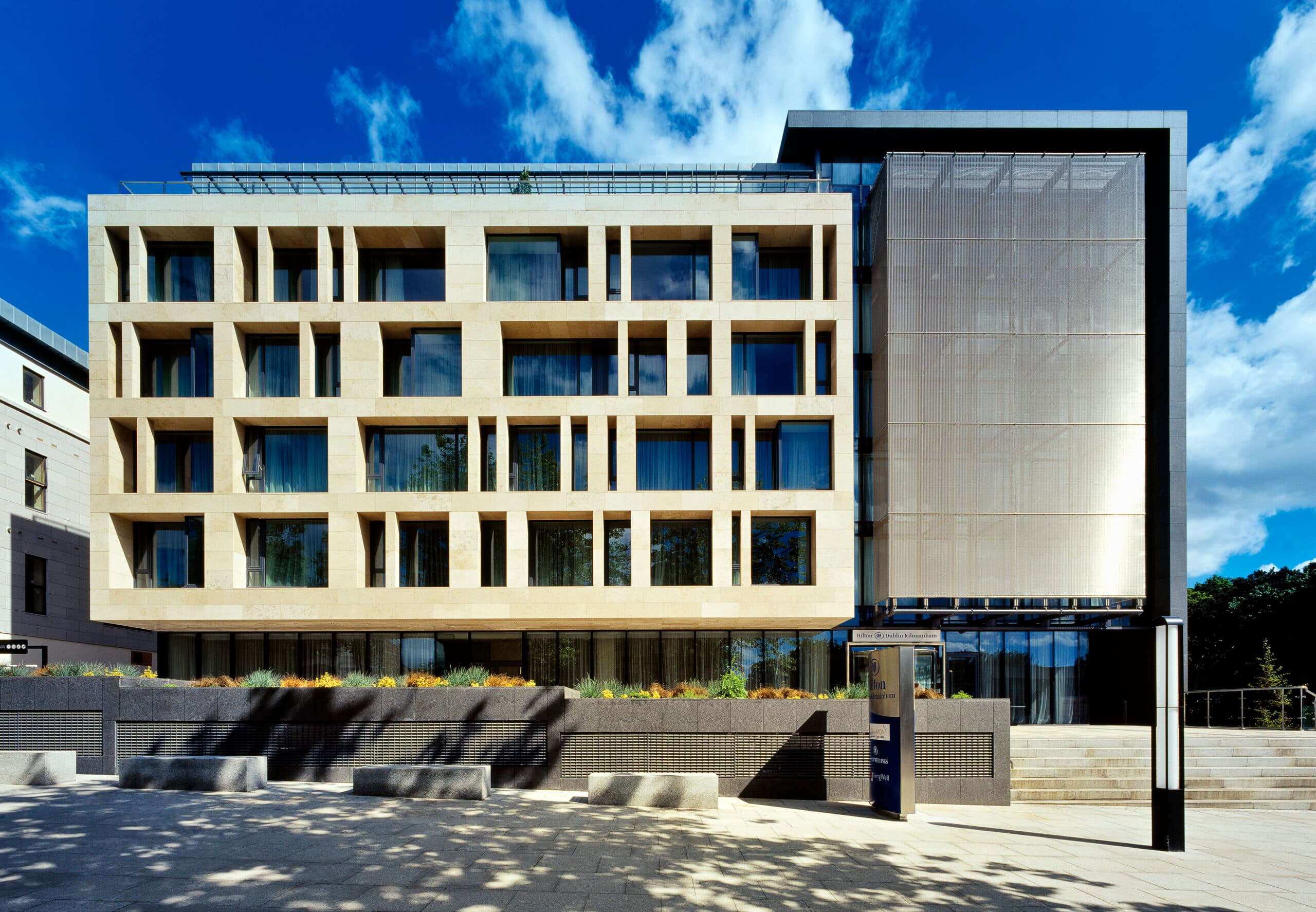 Facilities include a leisure centre with pool and gym, a conference centre and restaurant. The scheme is part of a mixed use development by Reddy A+U that includes residential, office, hotel, cultural and retail uses and 350 apartments