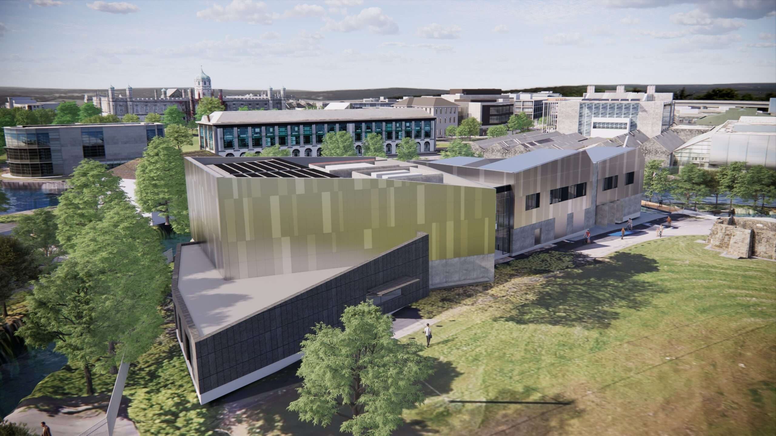 Incorporating the creative workshop studio of Macnas and combining the School of Music with a community facility at the entrance to the main University Campus in the heart of Galway.