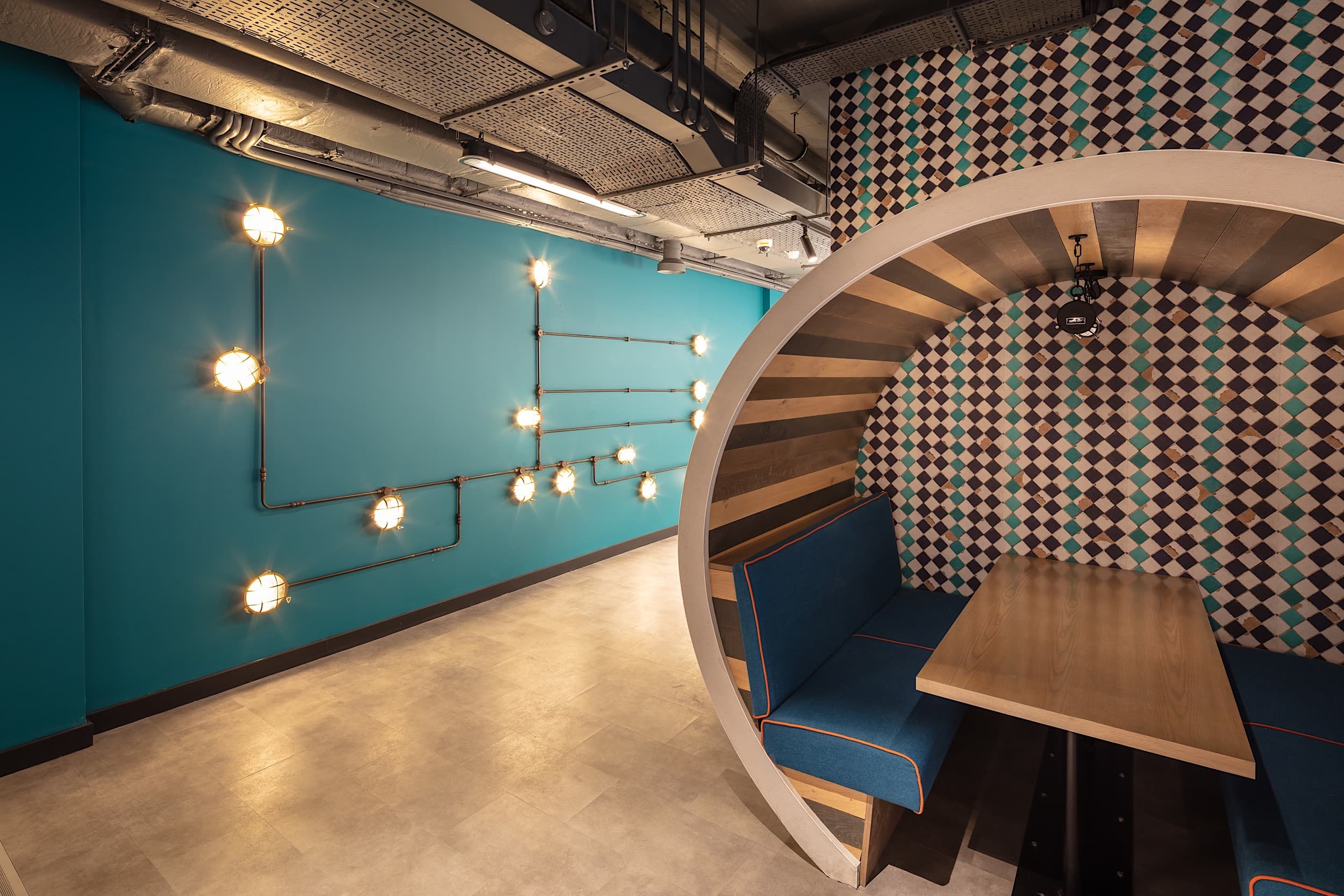 Extensive research resulted in a fully bespoke, vibrant design with the individual needs of today’s students at its centre. RA+U Interiors were involved in all aspects of the design including lighting design, M&E coordination and joinery. Bespoke joinery and lighting pieces give the space a unique identity, setting it apart from other student housing projects.