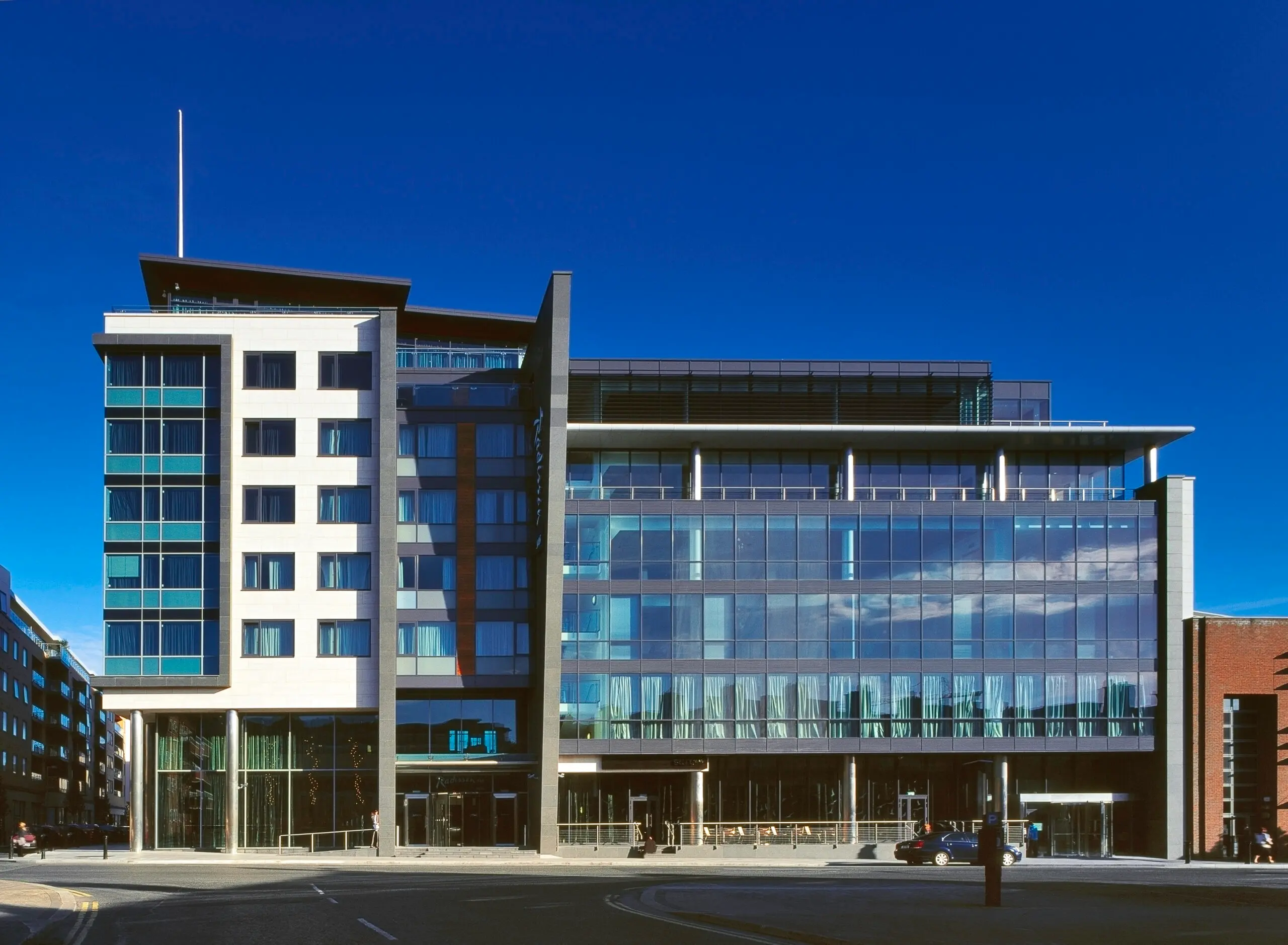 Radisson hotel and the extension sits within the existing city block, redefining the scale of its built environment, whilst creating a new desire line through the new square from Dublin Castle to the Liberties. The massing of the building fits in with the existing streetscape and brick textures of Dublin Castle while establishing a hierarchy of façade treatment through the depth of façade elements.