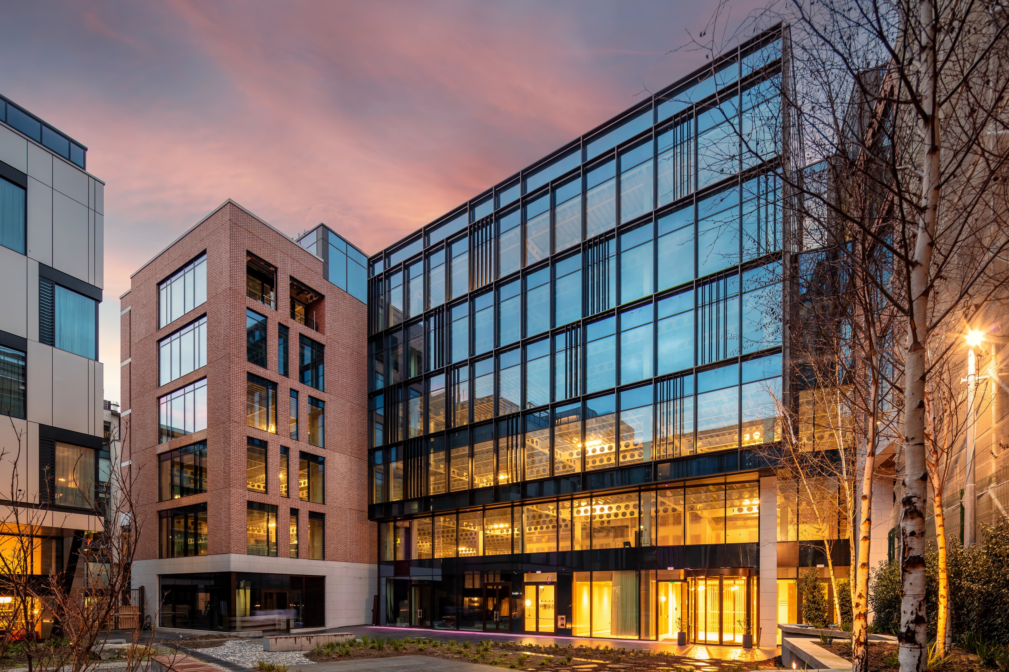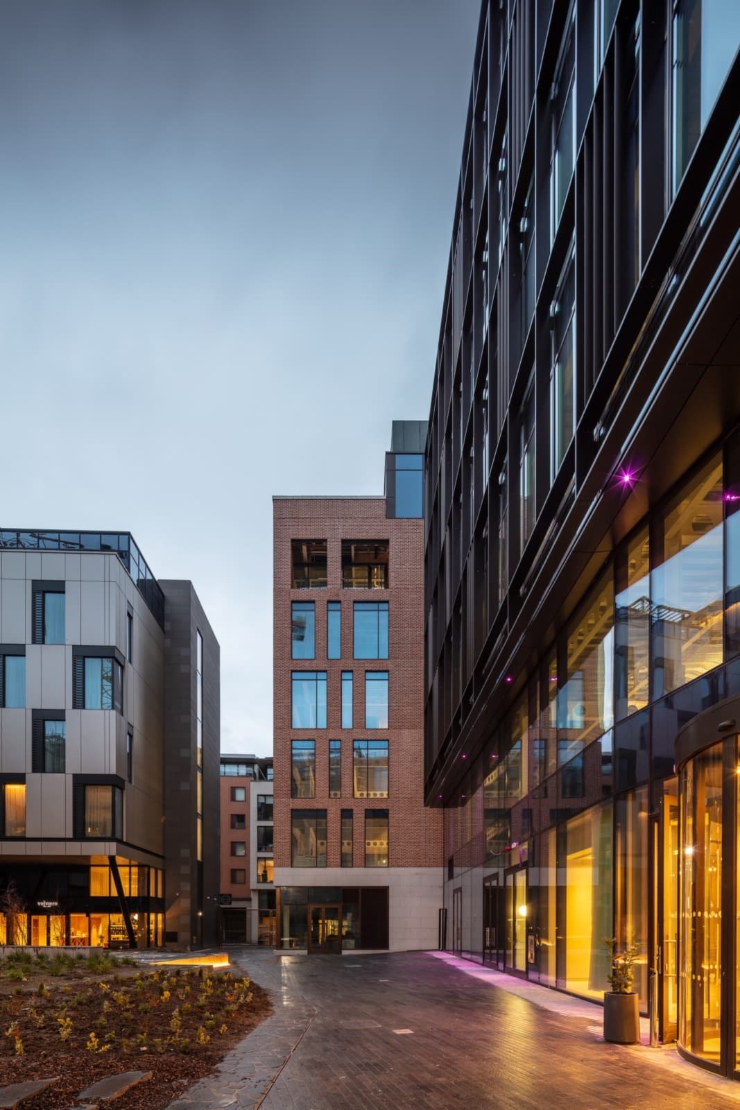 Radisson hotel and the extension sits within the existing city block, redefining the scale of its built environment, whilst creating a new desire line through the new square from Dublin Castle to the Liberties. The massing of the building fits in with the existing streetscape and brick textures of Dublin Castle while establishing a hierarchy of façade treatment through the depth of façade elements.