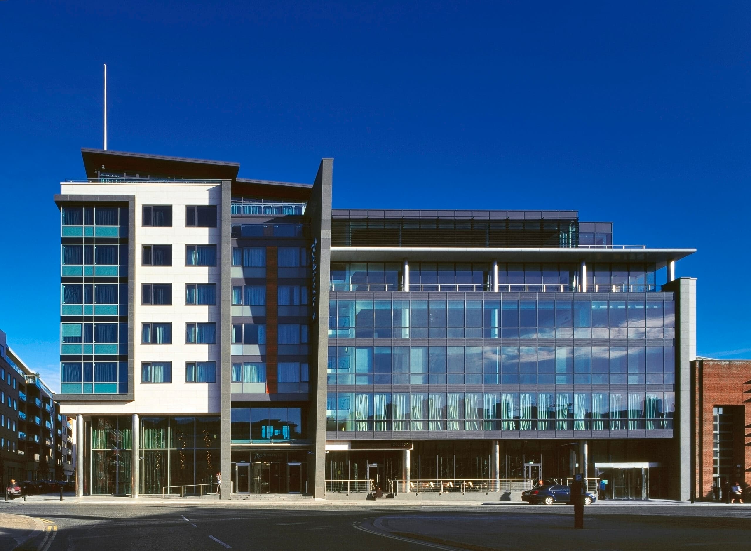 A stylish upgrade for a luxury hotel in a prime city centre location. Situated within the existing city block, The Radisson hotel and its extension creates a pathway through a new square, connecting Dublin Castle to the Liberties.