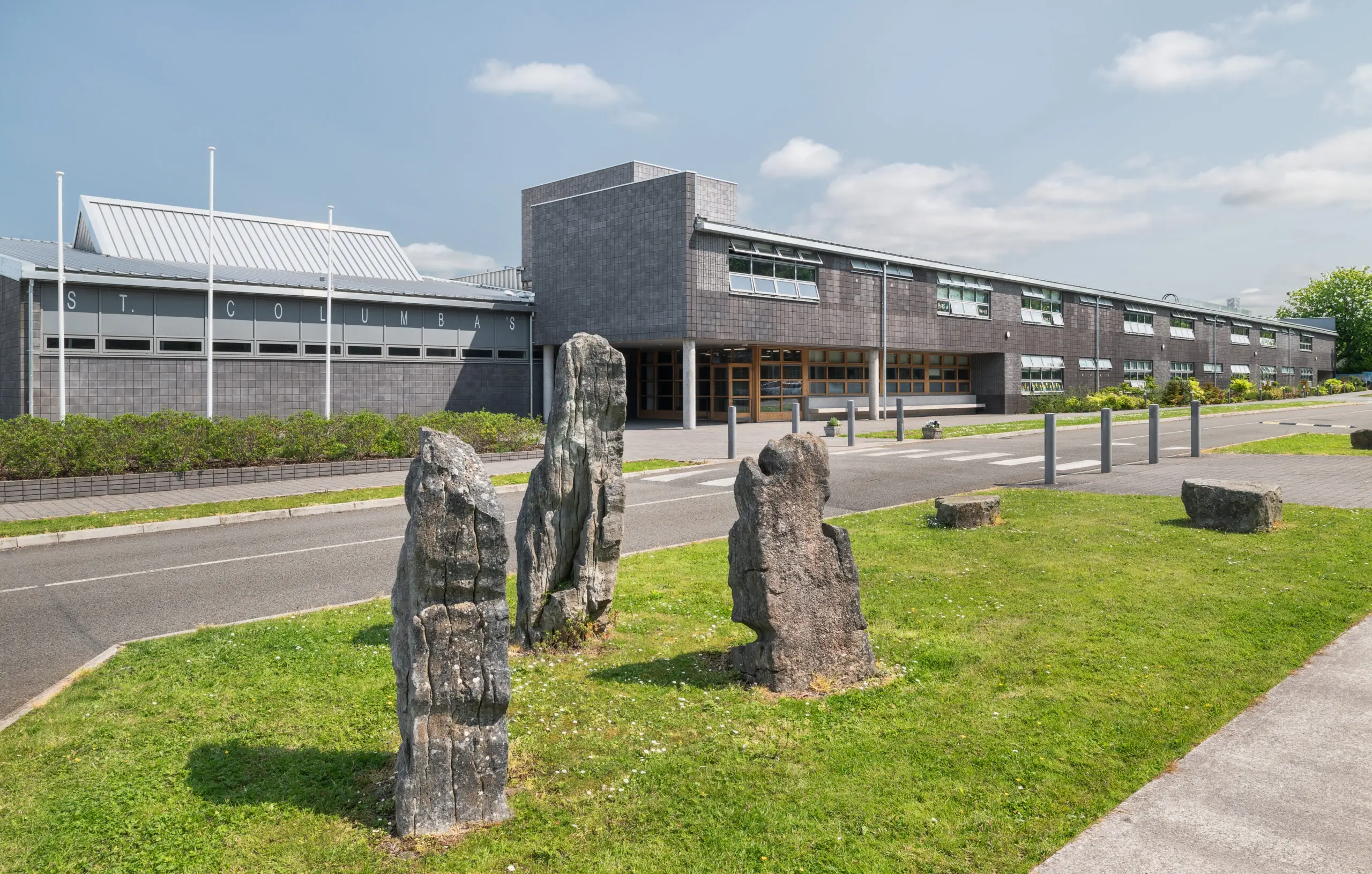 St. Columba’s is a long narrow site and has a shared access roadway with St Columba’s Girl’s National Schools. In response to the narrow plot the building has an elongated footprint which is arranged around a series of courtyards.