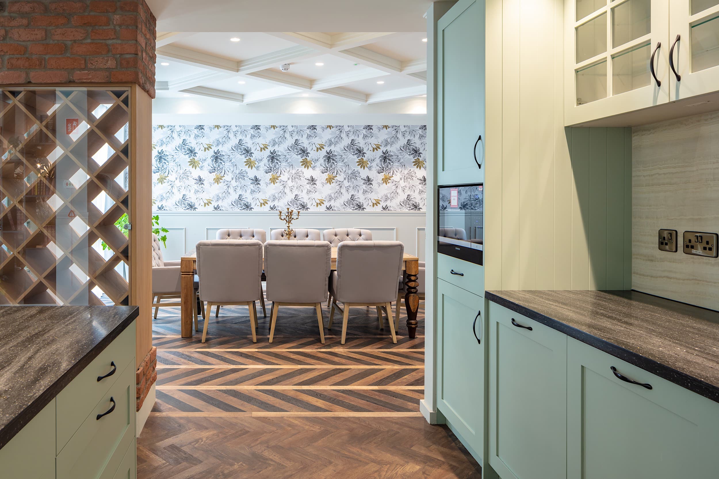 The scale of the home was intentionally reduced to create a more domestic feel by zoning each area with its own unique identity, reminiscent of a large country estate. Wings were aptly named the Conservatory, Pantry, Drawing Room, and Ballroom, each designed with a modern interpretation of these historical spaces. This design approach also provided intuitive wayfinding, making the building more familiar and comforting for residents.
