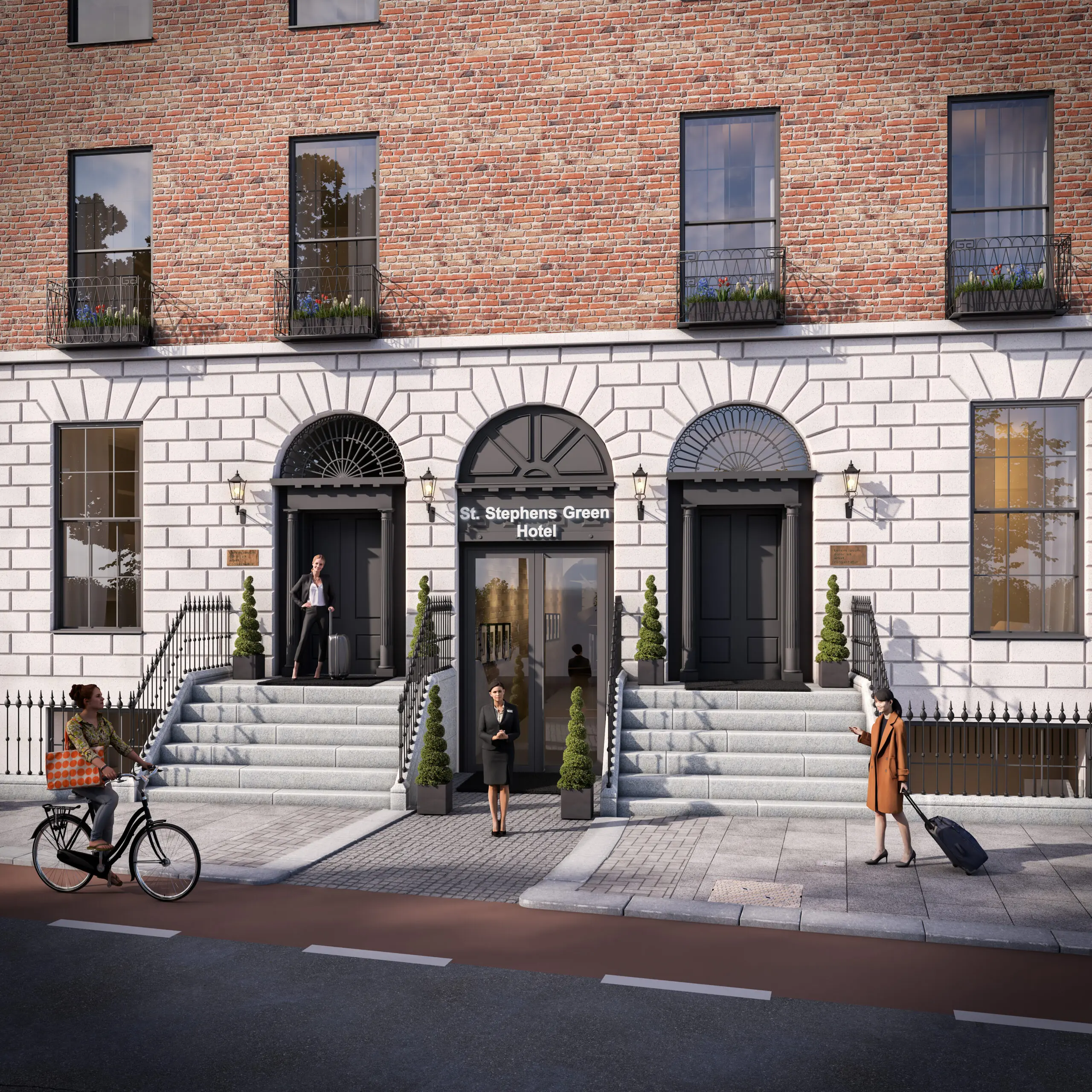 The architectural design incorporated a gap of 13 meters between the protected structures and the newly proposed hotel edifice, strategically concealing it from view on the Stephens Green side. However, on the Iveagh Gardens side, the visual impact of the proposed scheme, while substantial, was mitigated through the integration of stepped terrace gardens away from the boundary into the overall design.