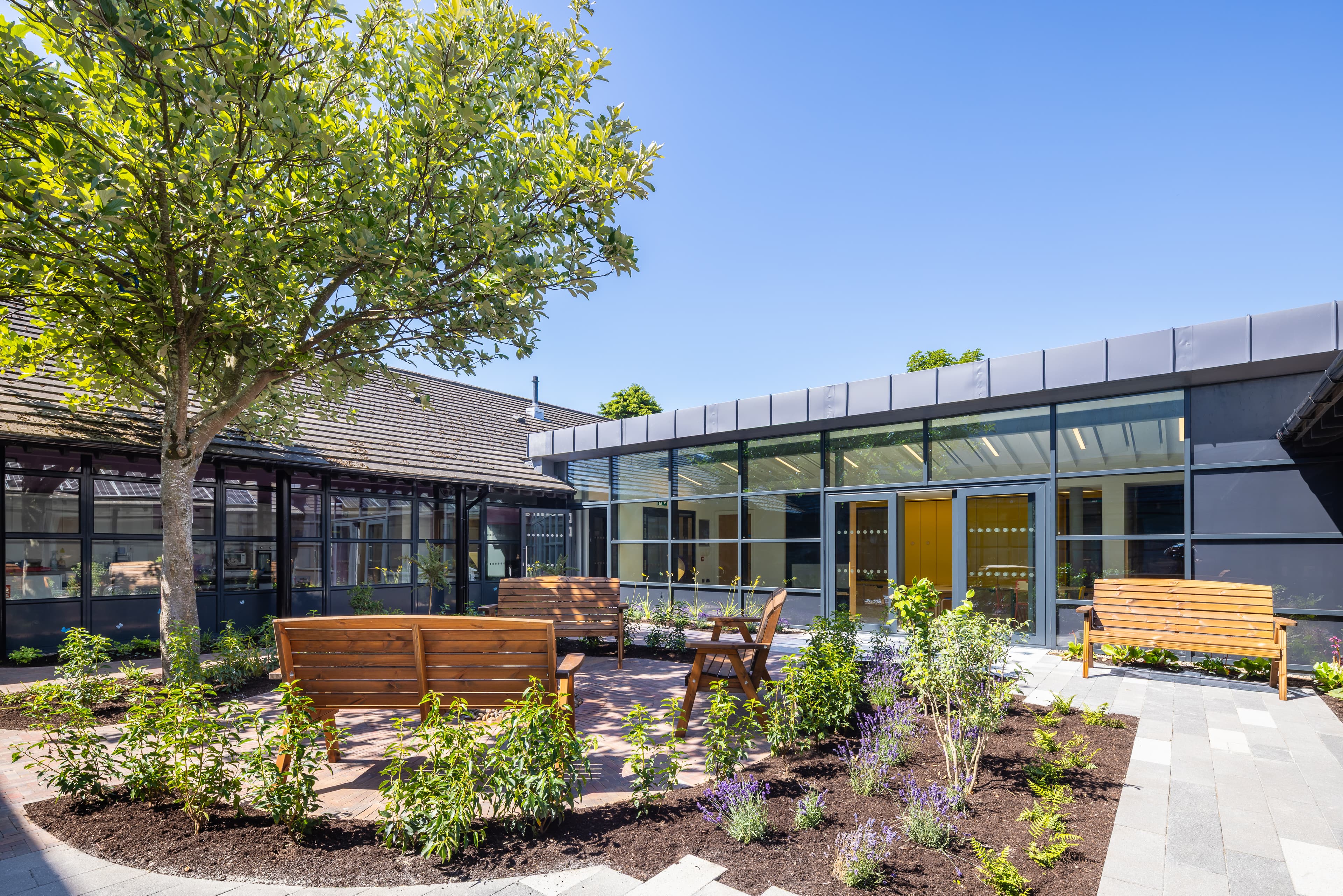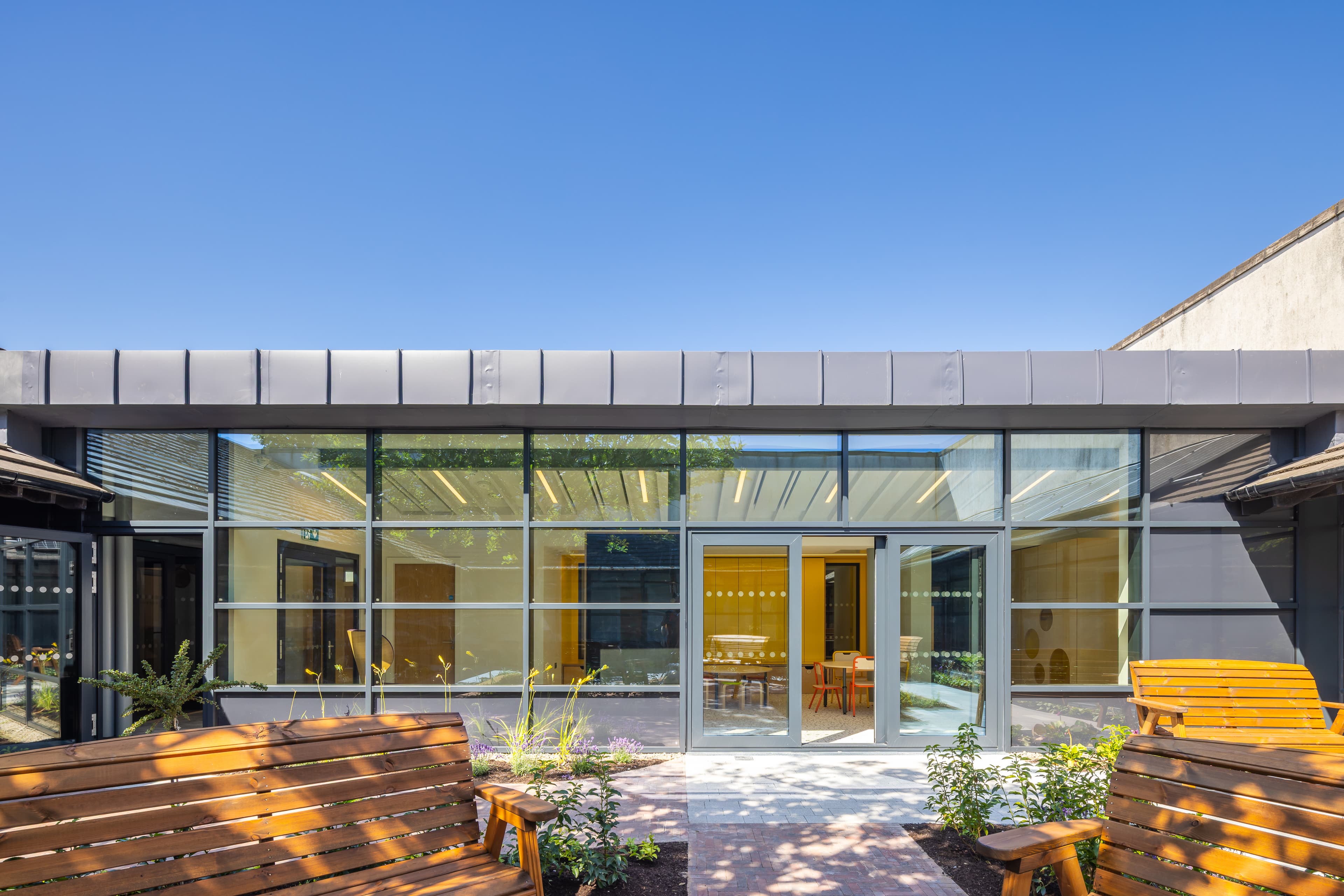 The project involved an extension to the existing building to provide a refurbished reception area, new playroom and kitchen and a new pod linked to the building with a pergola to create a space for teenagers. To achieve this, we assembled a pro-bono design team including Cumming Group as QS, Barrett Mahony Consulting Engineers for C&S, Black & White Engineers for M&E, Maze for Fire and DAC, and RMDA for Landscape.