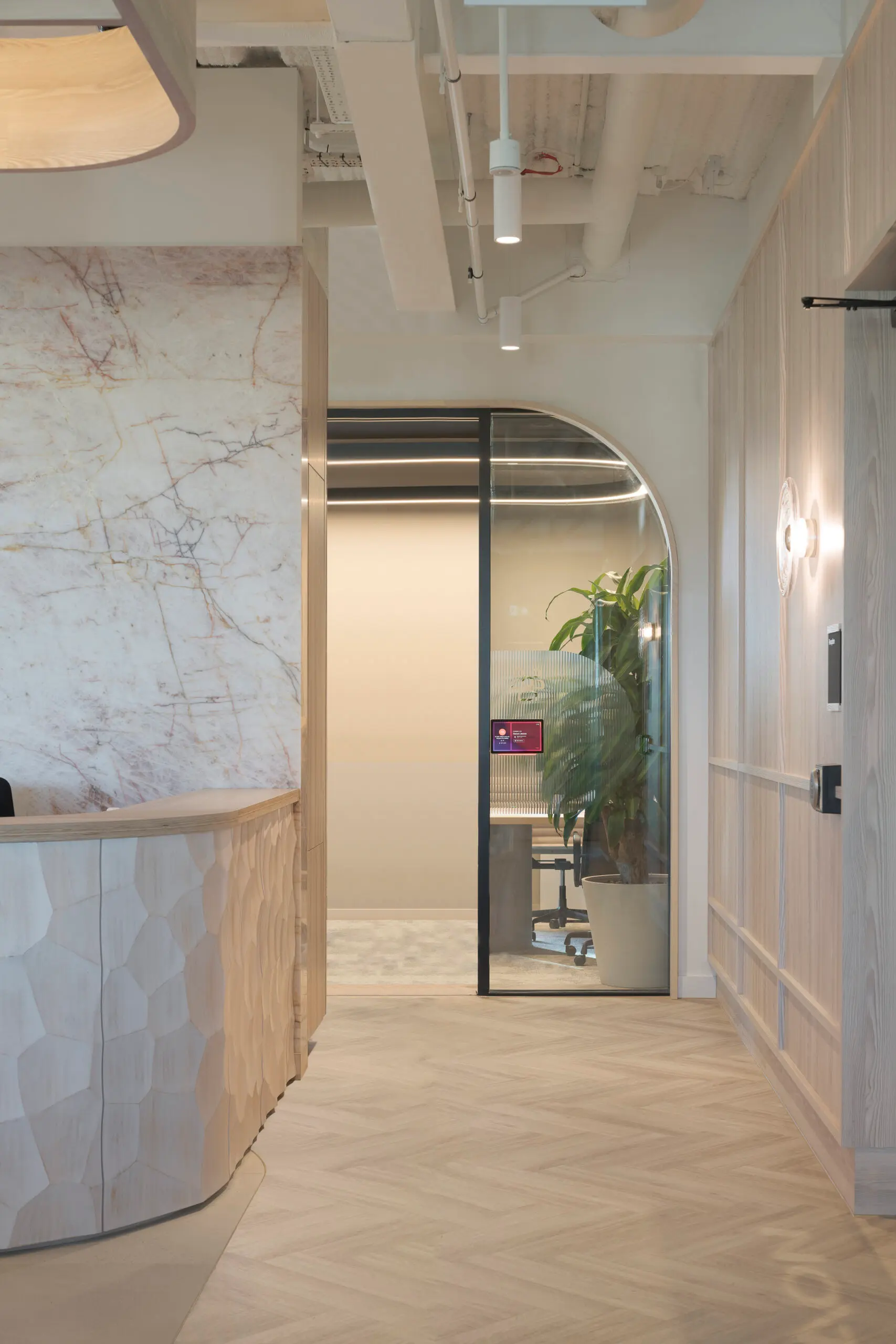 This modern, purpose-built space was designed to align with Aon’s vision for a collaborative, innovative, and employee-focused workplace. The design integrates custom workspaces, including bespoke collaboration zones, breakout areas, and technology-enabled meeting rooms, fostering seamless interaction and creativity among Aon’s 587 Dublin-based colleagues.