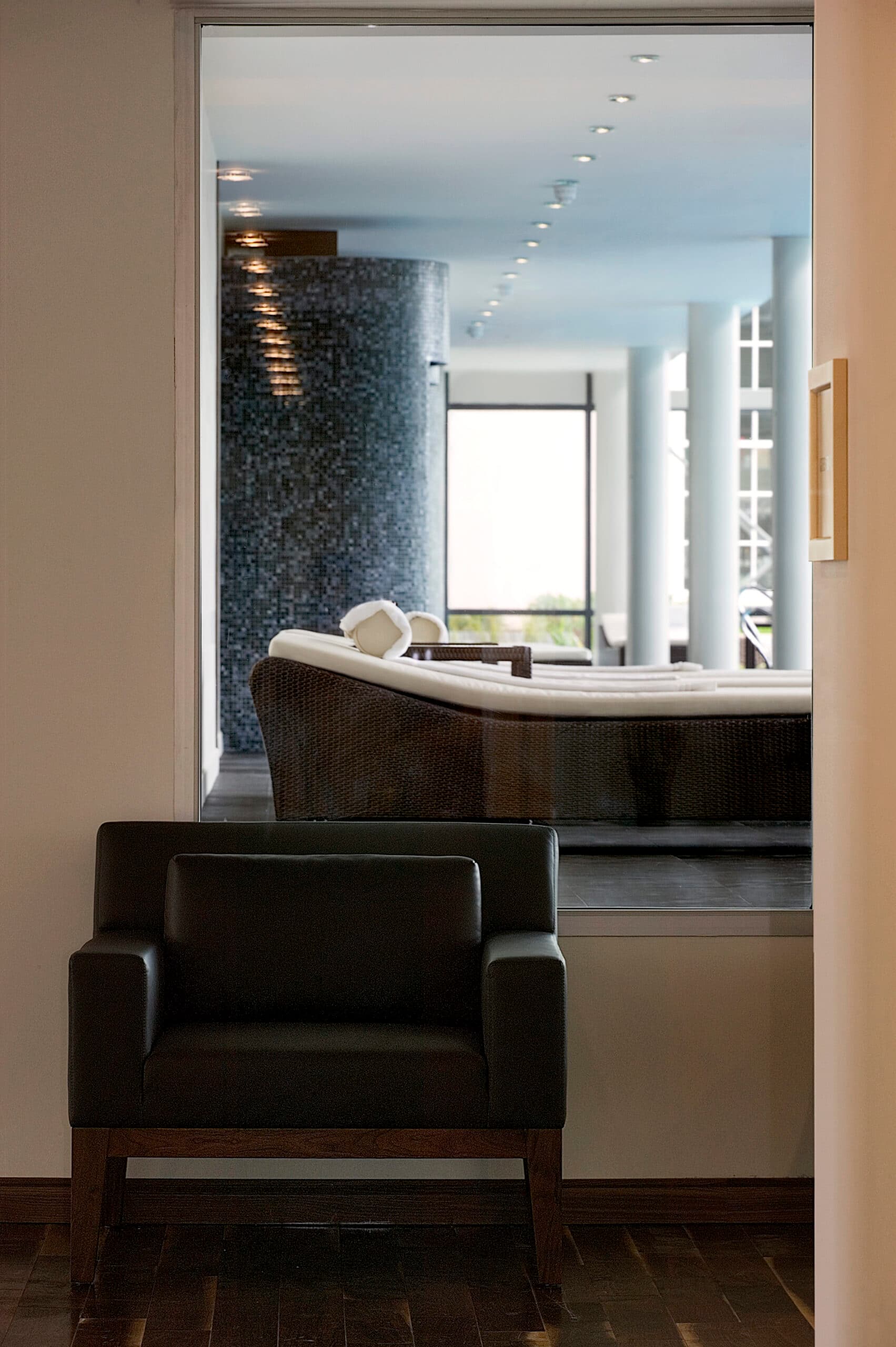 New elements introduced to the resort arrangement were conceived with retrained materiality to reduce visual impact. Sited with deference to the existing manor house, they were developed as a contemporary extension to the west of the existing house, laid out to avail of partial screening offered by existing mature woodland connected to the original house by a glazed highly transparent modern intervention.