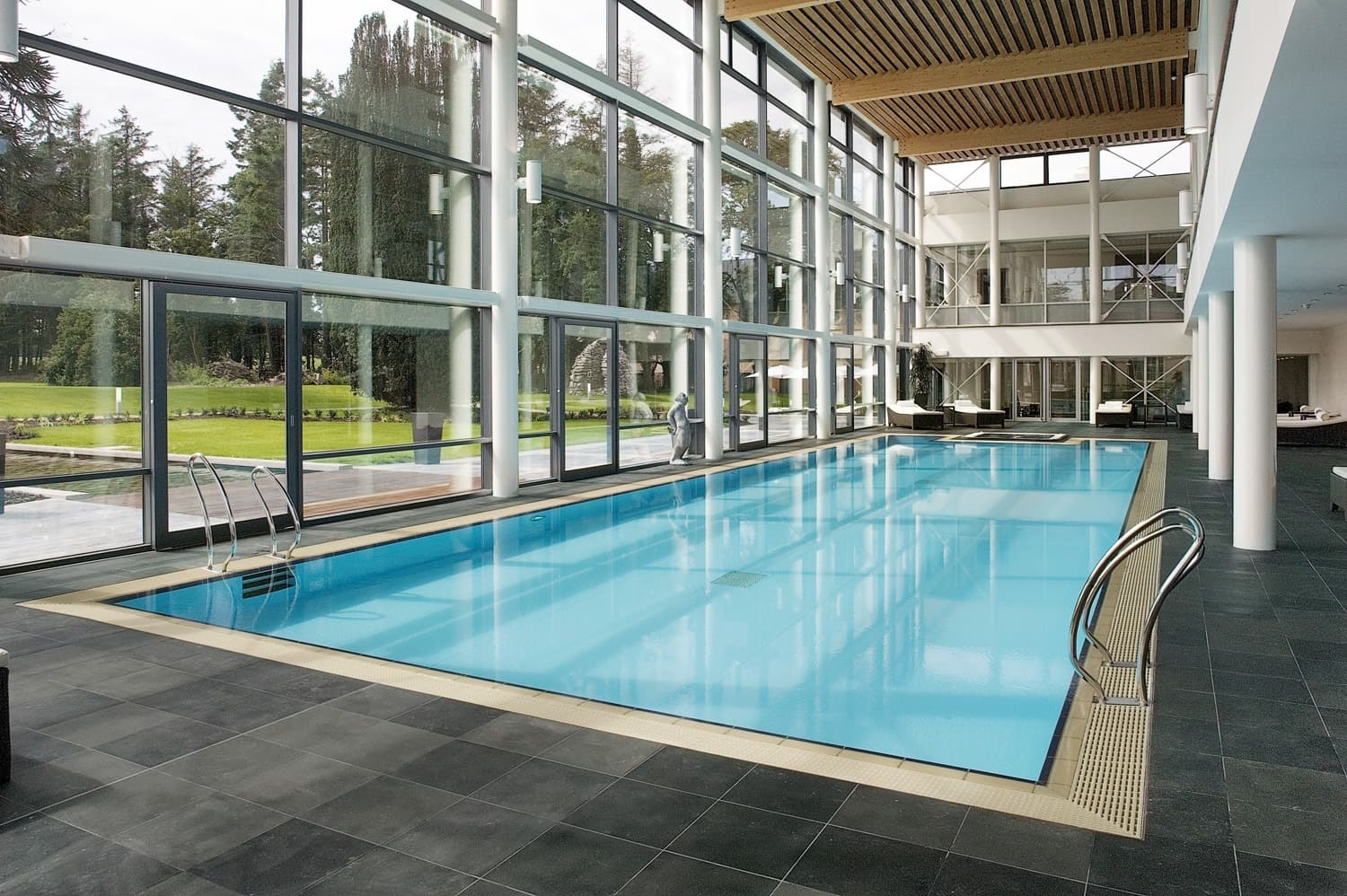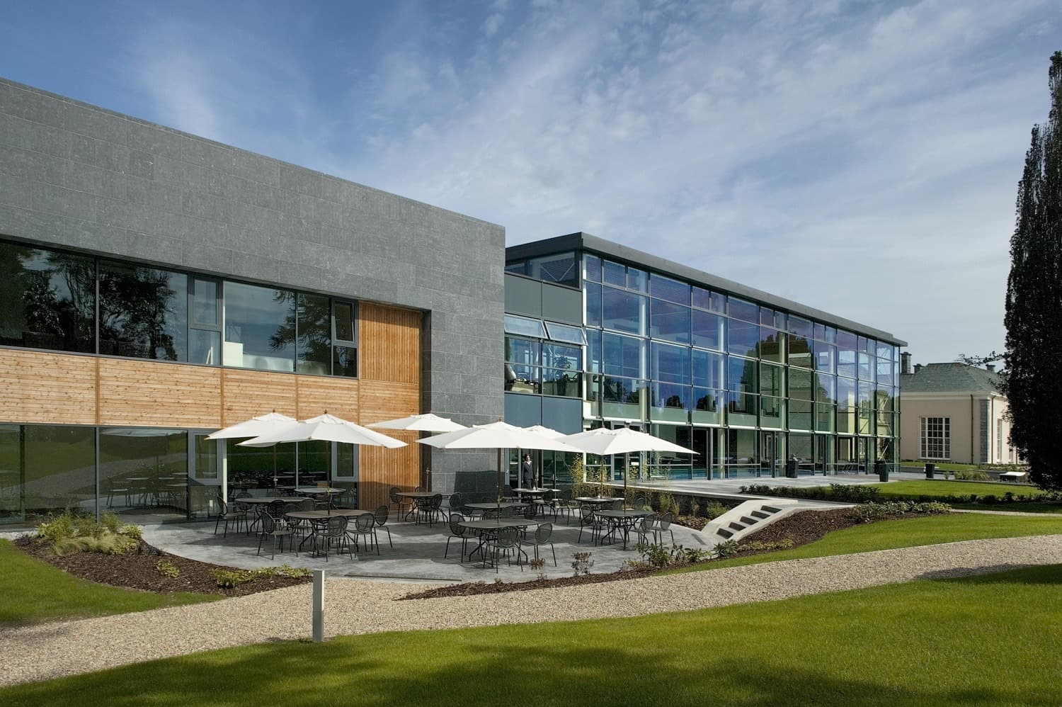 Reddy A+U were architects as well as interior designers on the project and maintained a close relationship with the client. The brief included the conversion of an 18th century manor house and formal gardens, with additional new hotel facilities, an eighteen-hole golf course, club house, ancillary golf lodges and gate lodge accommodation.