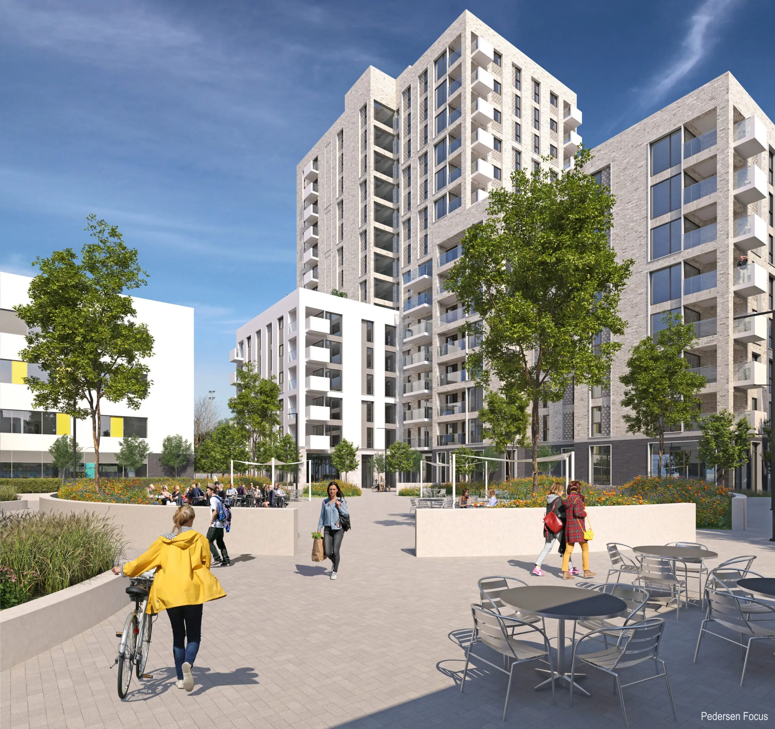 Conceived as a new quarter, incorporating a series of character areas that provide new urban spaces, residential courtyards, parkland and a town square addressed by a 15-storey landmark residential tower.