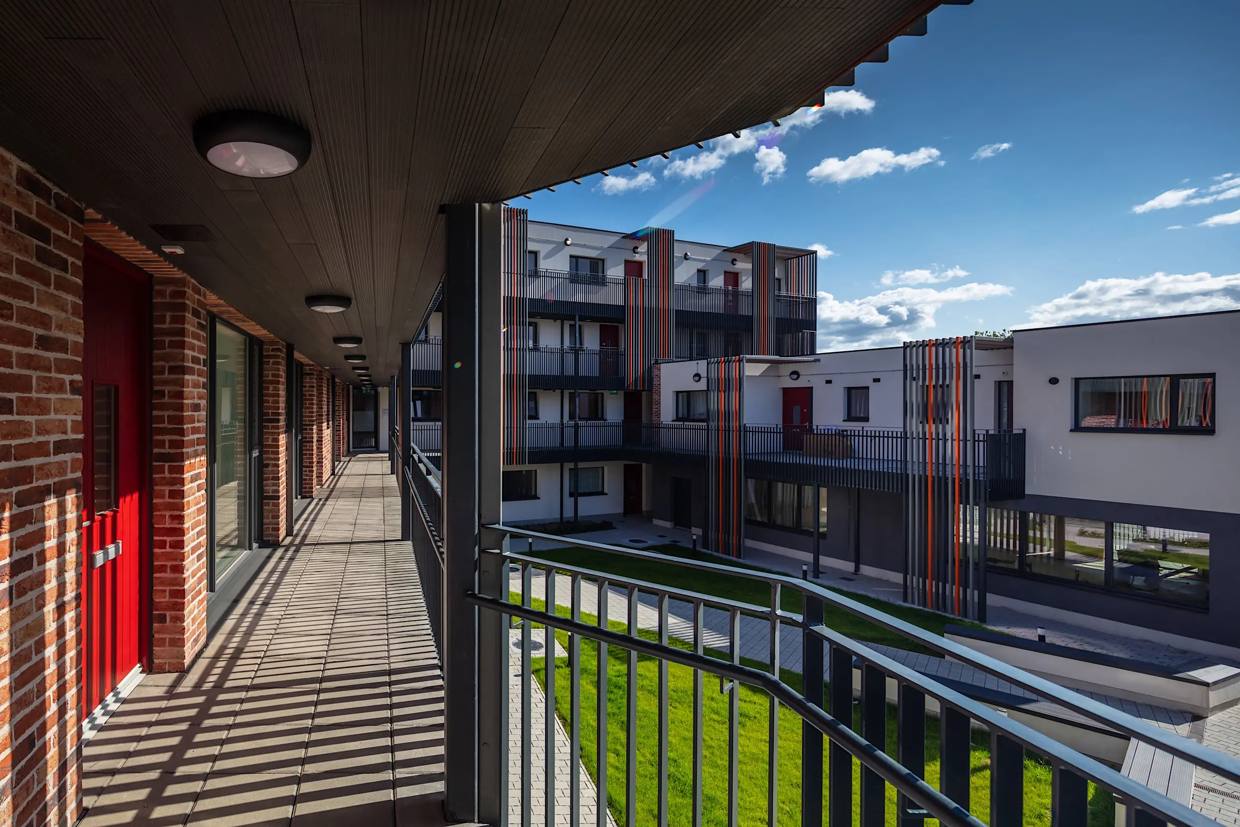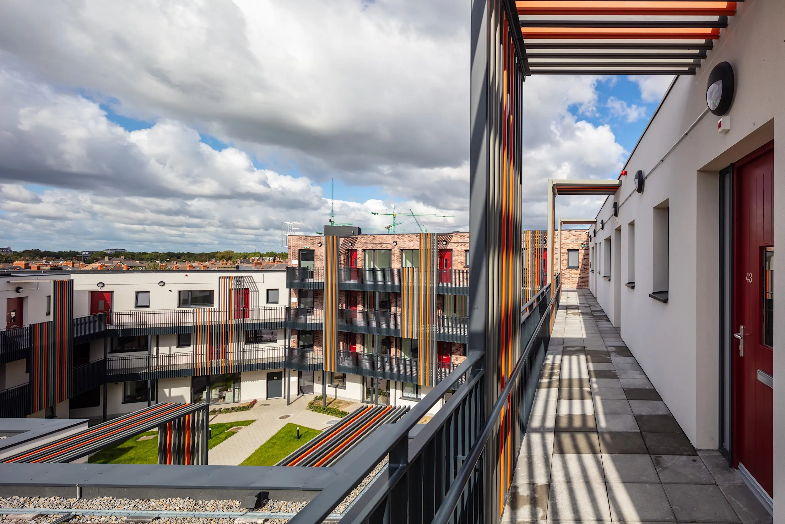 Scale and massing of the scheme have been modulated to take into account sun movement and daylighting to the courtyard while exploiting site constraints and ensuring that it contributes positively to its context. A key aspect of the success of the design is the access walkways. These ‘sky bridges’ act as informal meeting spaces and place a strong emphasis on interaction between residents. This interaction is a central tenet of the design and forms the key driver to the overall building design and aesthetic.