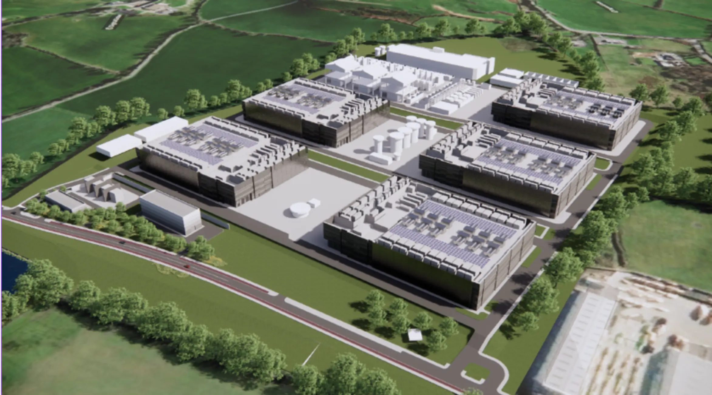 Reddy A+U secured planning for five ICT buildings and a stand-alone Energy Centre on a 24.16 ha site. The scheme integrated new internal roads and service infrastructure while retaining hedgerows, and green buffers. Ecology mitigation included habitat protection measures such as badger sett integration and included landscaped screening to preserve residential amenity.