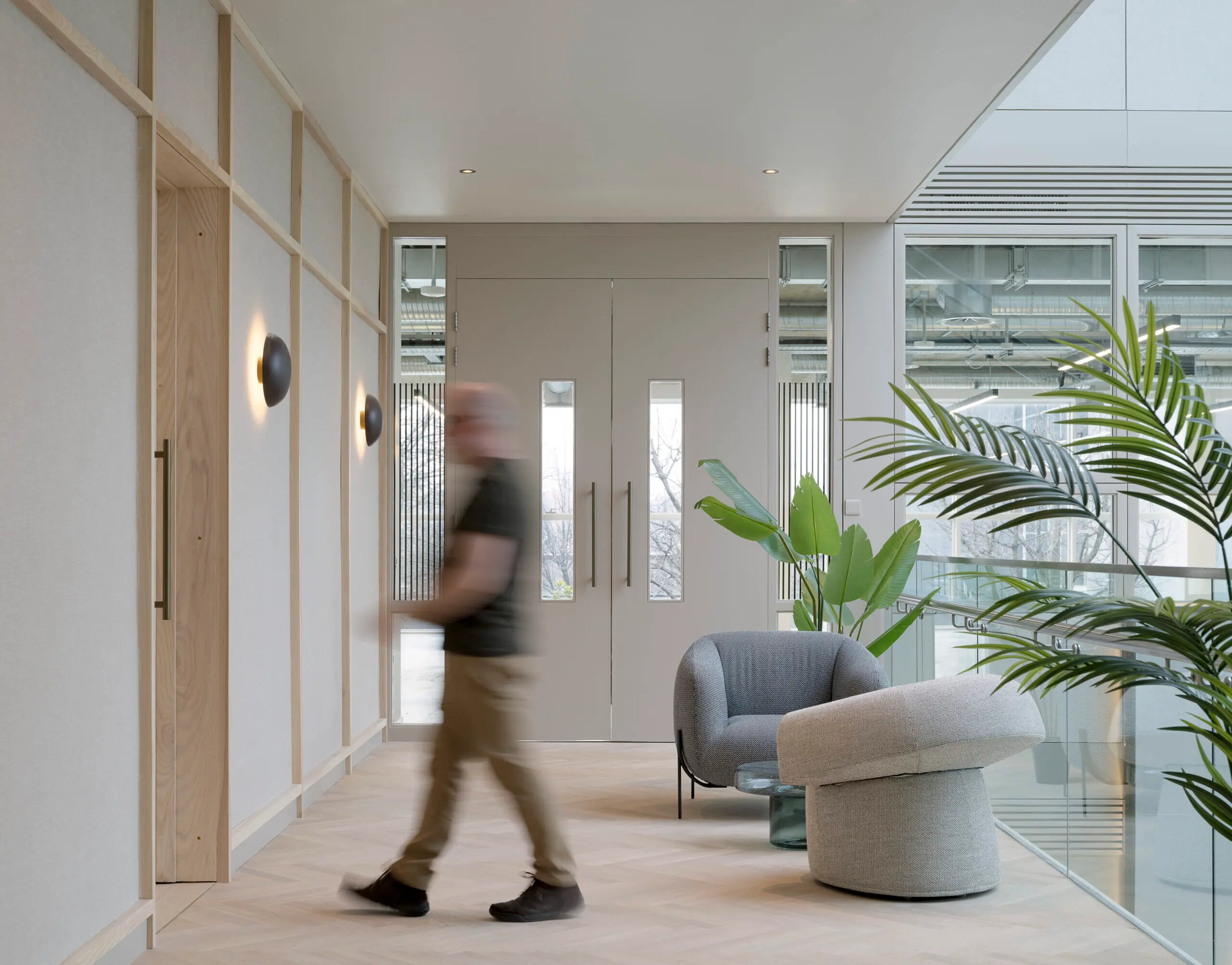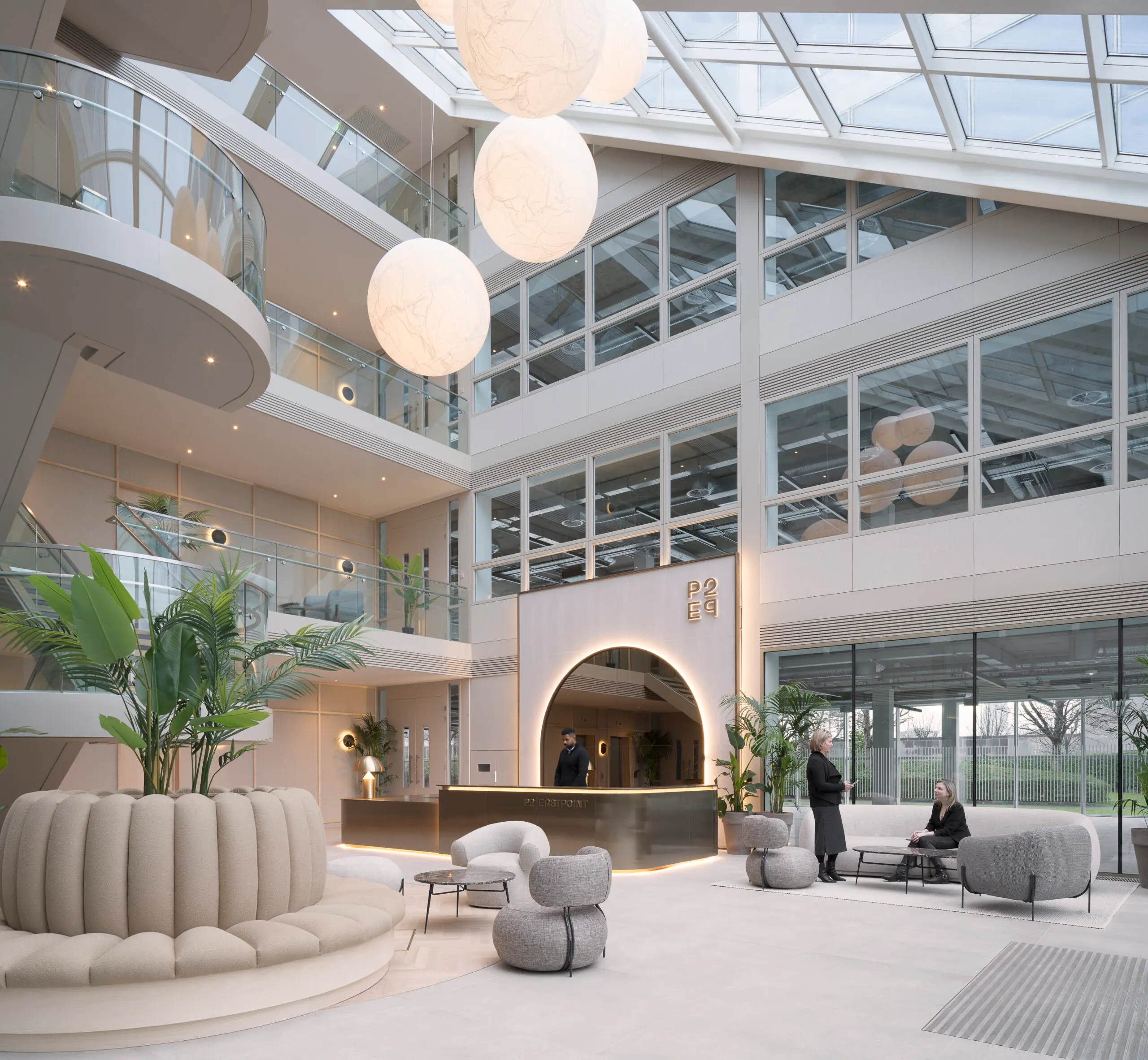 A fully refurbished, state-of-the-art workplace. Enhancements included energy-efficient fixtures, acoustic glazing, upgraded lifts, and a biophilic atrium with greenery and bespoke lighting. The interior scheme maximises space with dynamic breakout areas, galleries, and informal meeting zones.