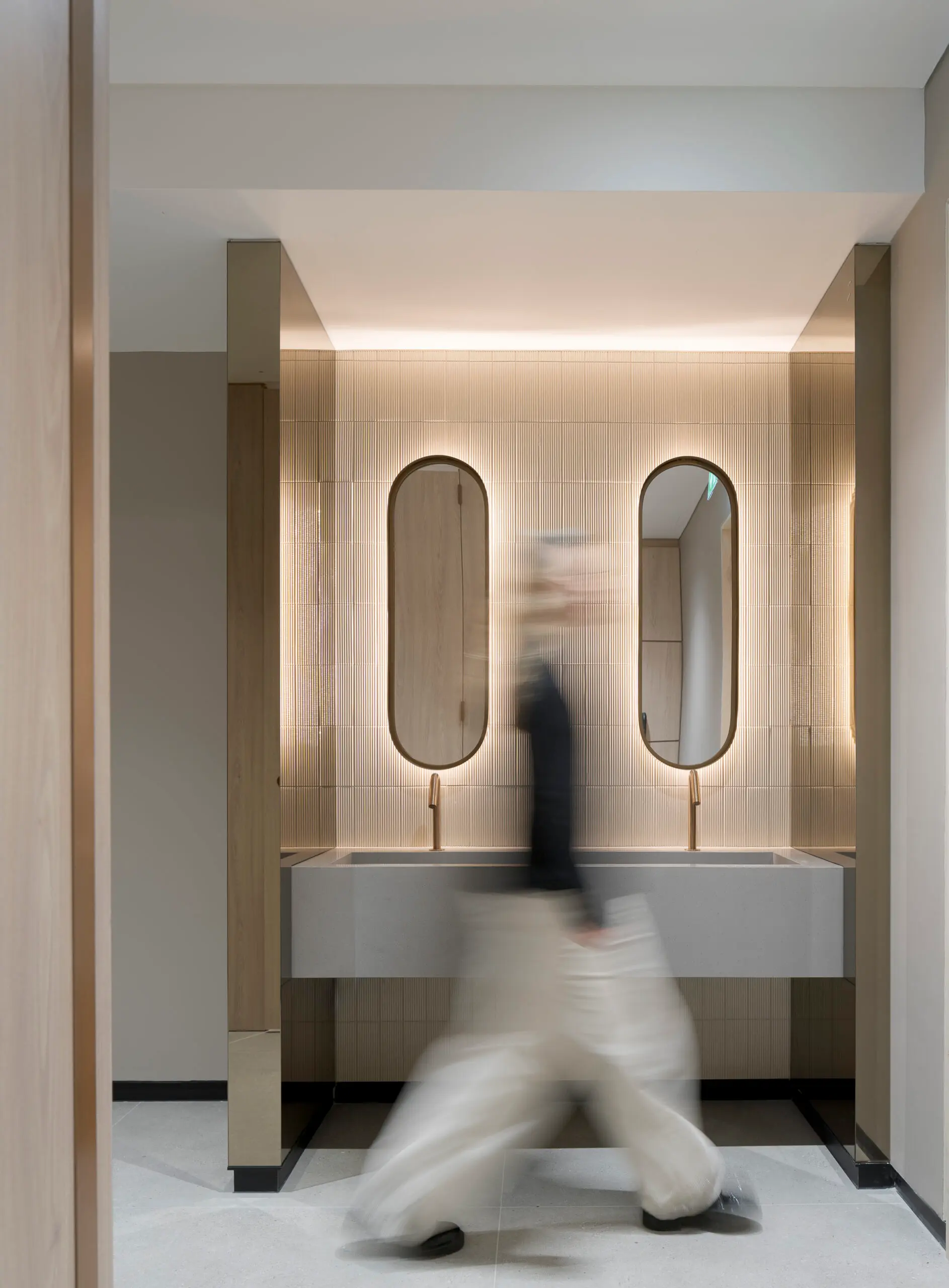 As much as possible, existing equipment was refurbished and repaired on this project, including the revolving doors, façade, lifts, fire escape staircase finishes, and doors, all carefully restored by skilled tradespeople.