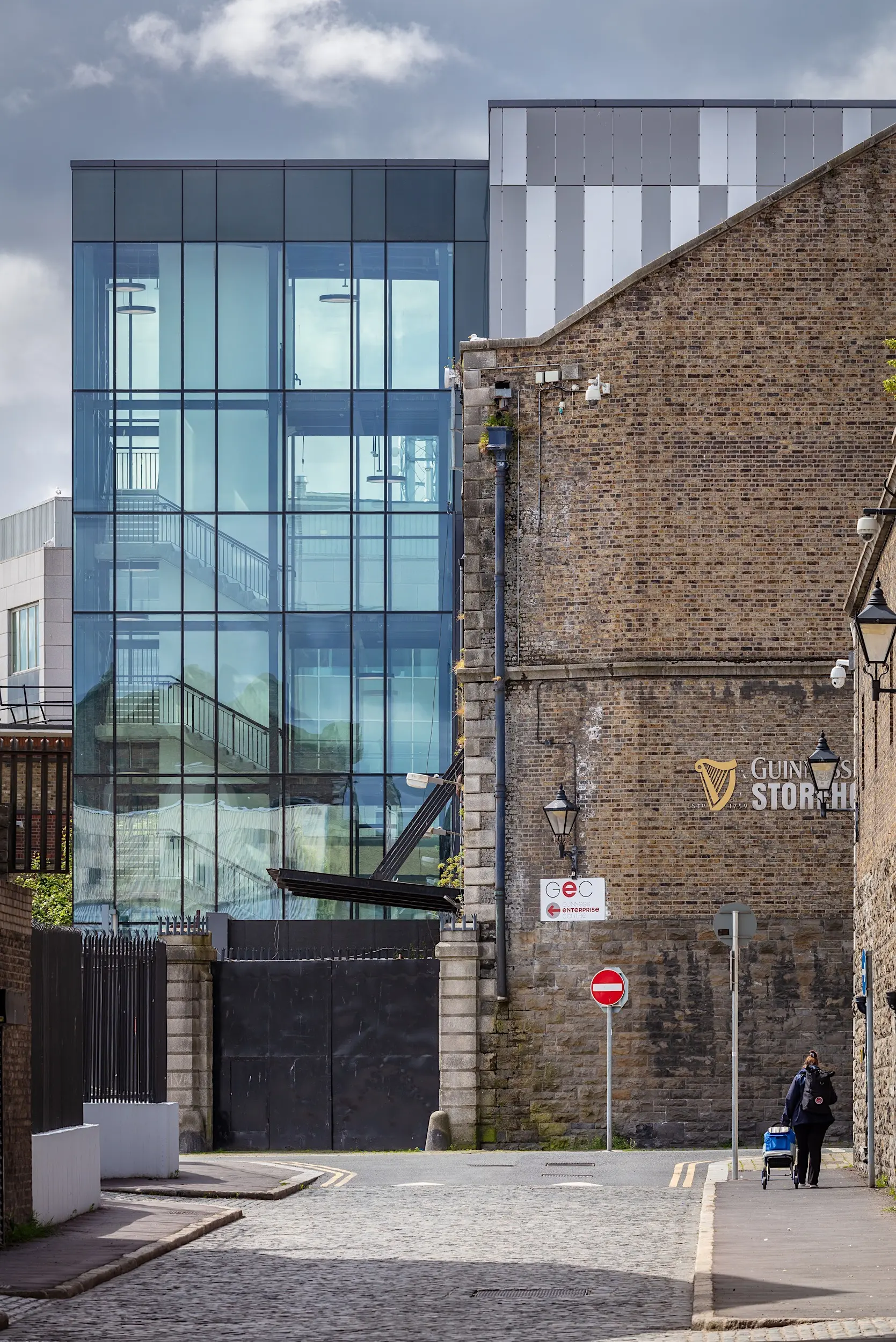 The Taylors Lane site in Dublin 8, once a mill race fed by the River Poddle, was acquired by Guinness and generously gifted to the community as a 3,000m² enterprise hub. An opportunity to modernise and expand the building, including the addition of a rooftop extension, was won via a competitive design process.
