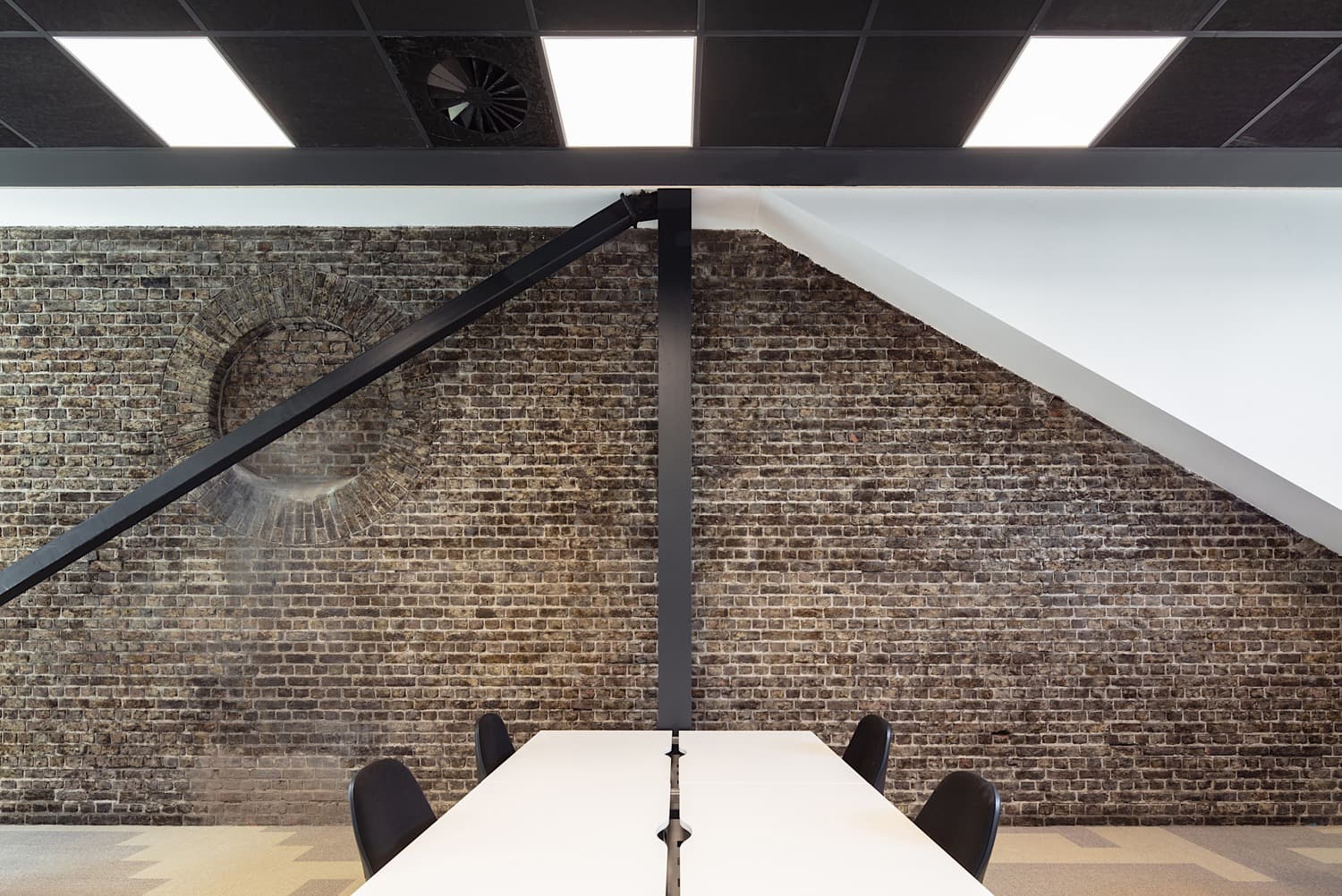 The interior fit-out focused on celebrating the warehouse’s functionality by highlighting its original historic features. Instead of adding new embellishments, a portion of the budget was allocated to exposing, cleaning, and repairing the existing brickwork, zigzag roofline, and steel structure. These elements serve as a strong backdrop for the new minimalist design.