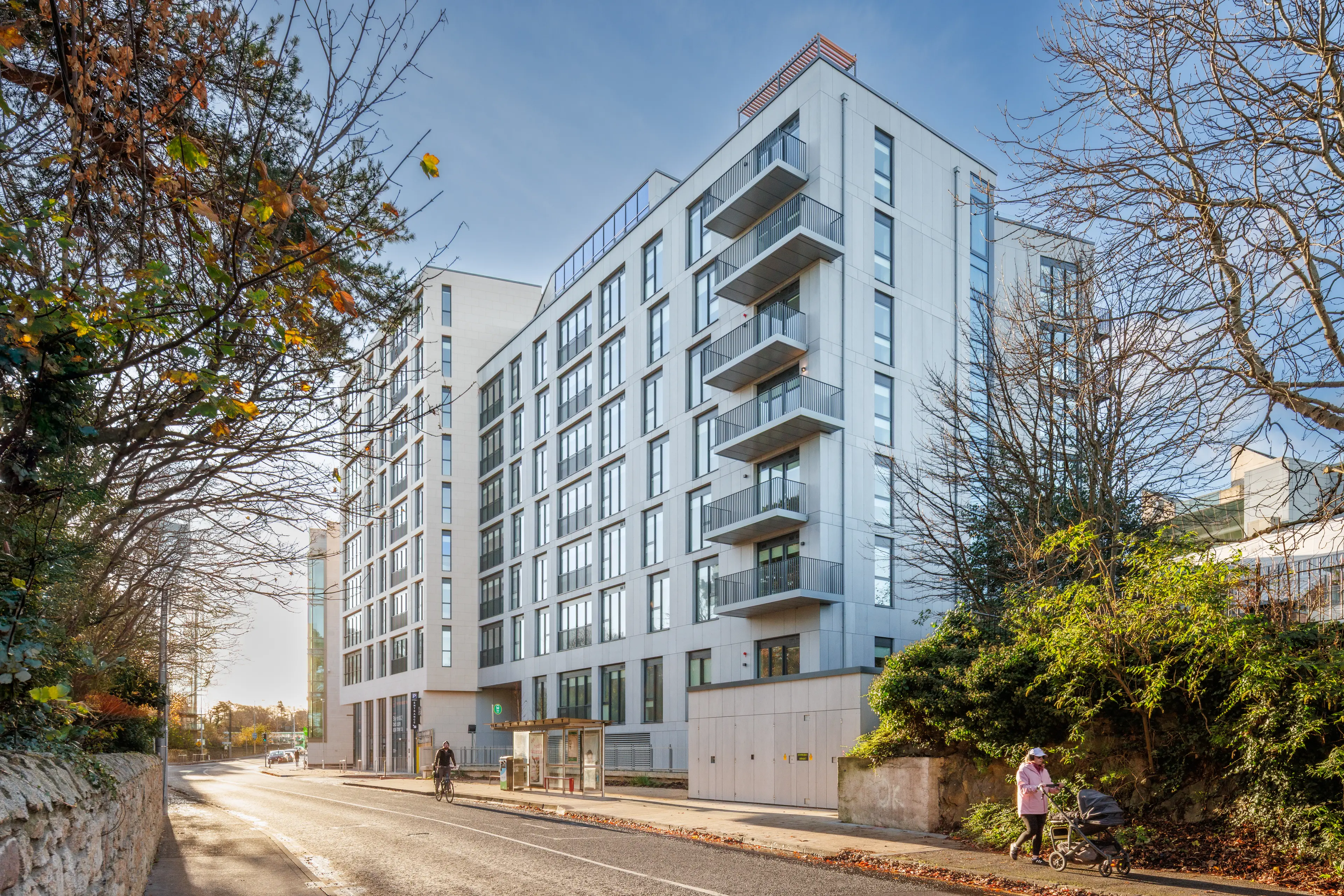 Constructed above three levels of existing town centre car parking, the scheme occupies a former gap site along the Sandyford Road street frontage.