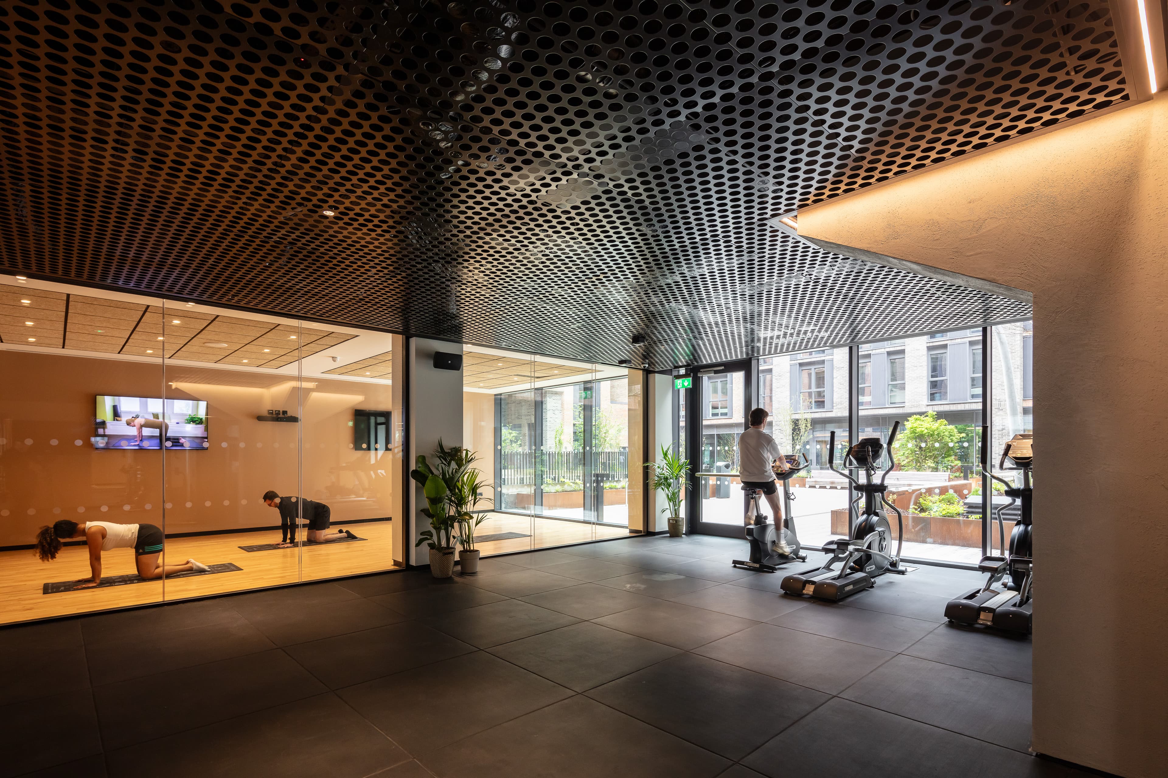 The interiors focus on inclusive social spaces which foster community gatherings as well as health and well-being. These spaces include private and shared dining spaces, café bar and lounge, outdoor BBQ spaces, herb gardens, gym, spa, sauna, wheelchair-accessible jacuzzi and cinema rooms, as well as co-working spaces , a pet wash and a dog walking arena.