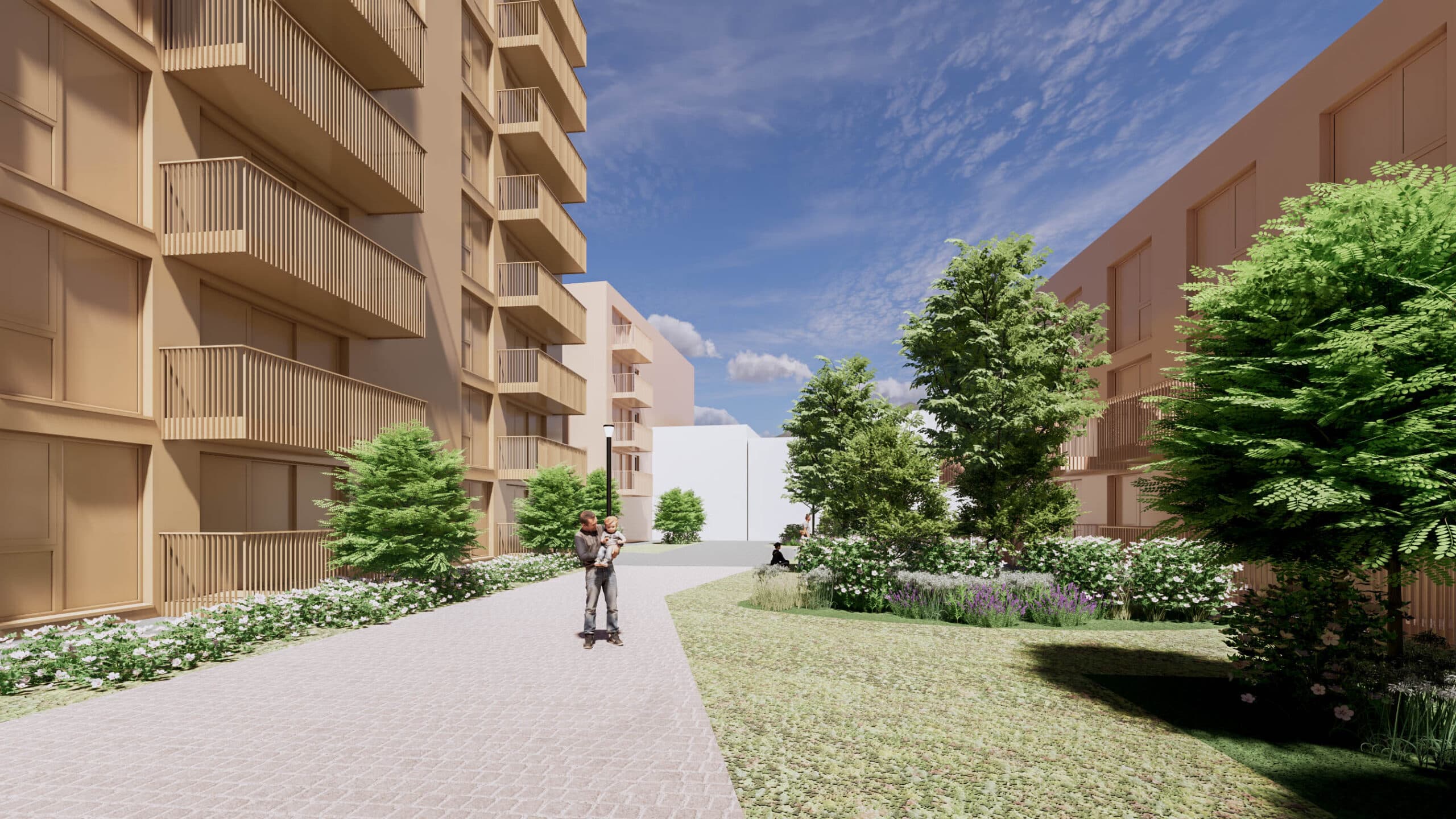 Opportunities for the neighbourhood are planned around a series of public spaces that will create a safe walkable neighbourhood within a diverse and rich historical setting. New homes will be multigenerational, sustainable and arranged around newly formed squares, courtyards and green infrastructure for the local communities.