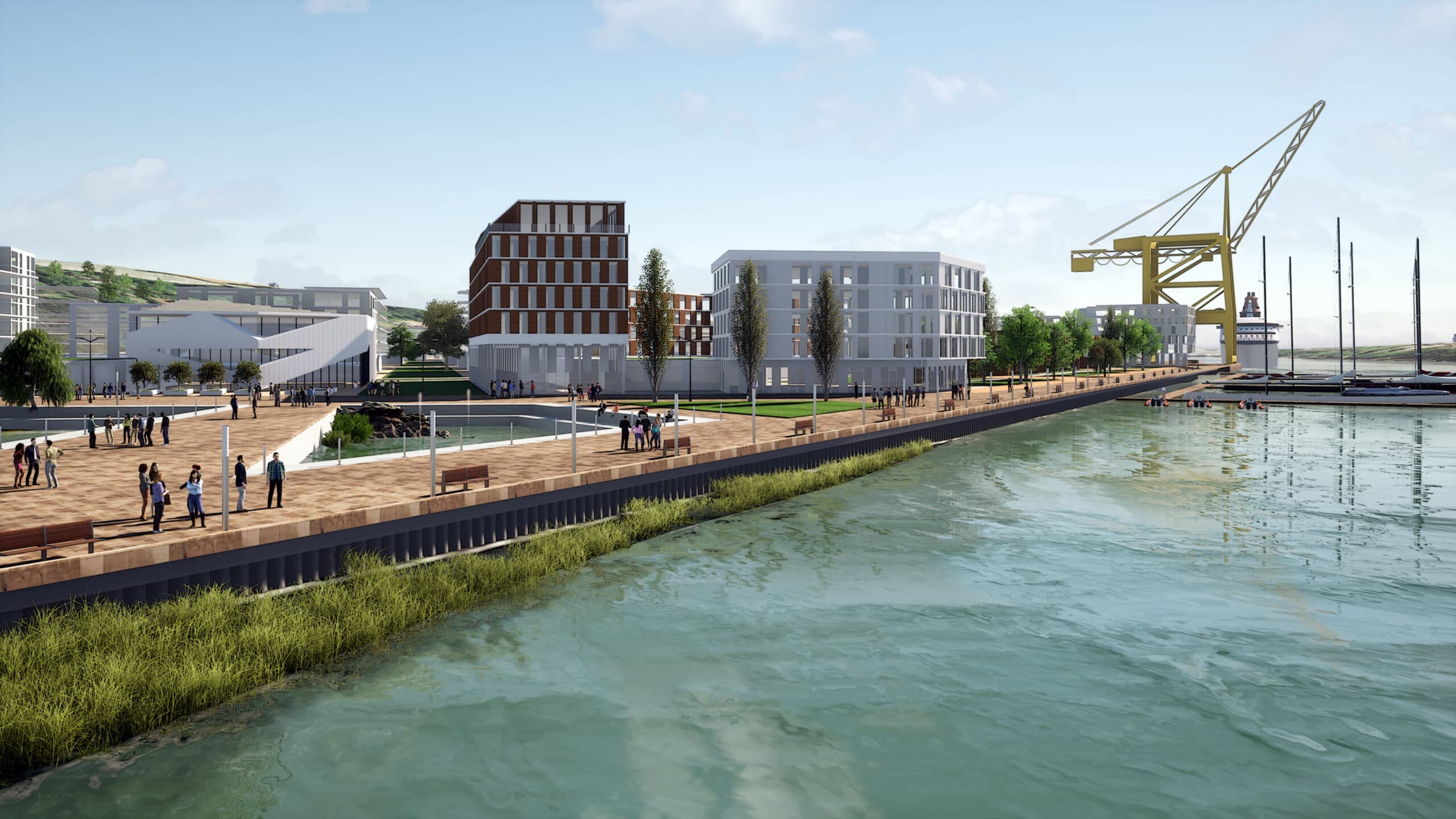Potential for the site was evident from the outset. It has an excellent location, close to the city centre and uniquely placed between the city and the lower harbour. It also has excellent connectivity to the national road and railway network, a wonderful southerly aspect and views, and in particular, it has three kilometres of prime waterfrontage along the river Lee.