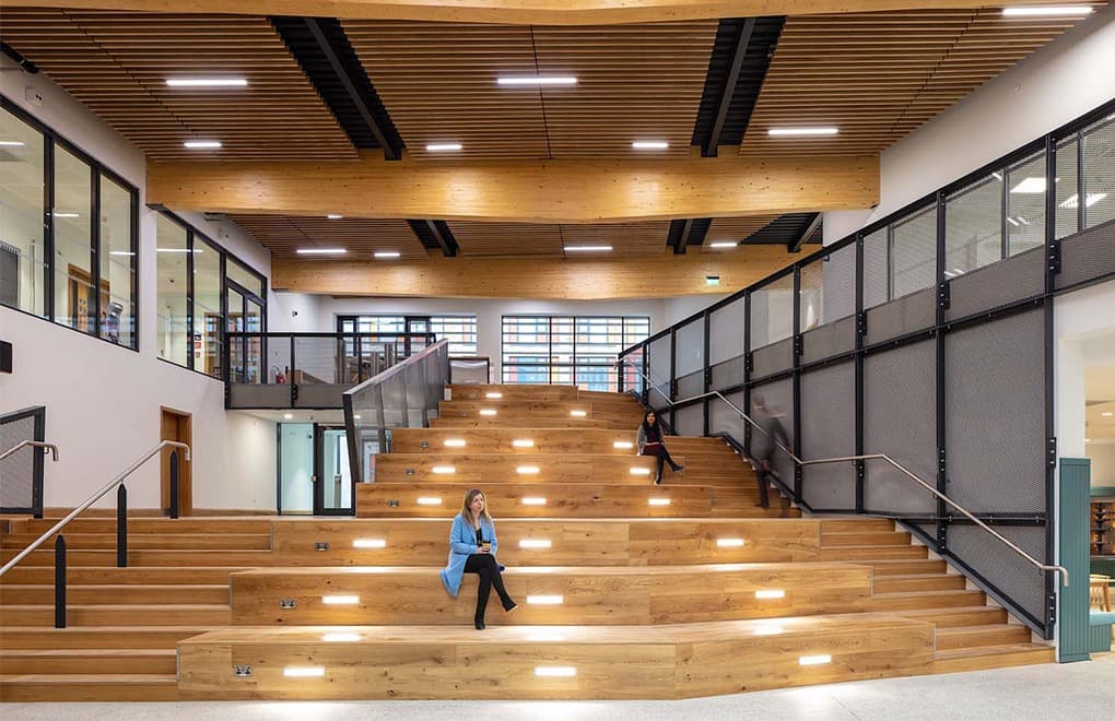 To support the high student capacity and diverse activities, a carefully planned acoustic solution was implemented for the central atrium and cellular pods, seamlessly managing noise from multiple concurrent activities.